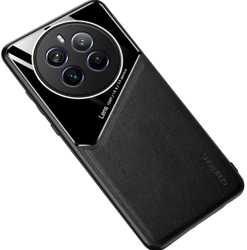 Dl3 Mobilak Luxury Case For Realme 12 Pro 5G/Realme 12 Pro+ Plus 5G, Ultra-Thin Soft TPU Frame, Back Leather Mixed Double+Plexiglass Protective Cover With Built-in Car Magnetic