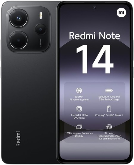 Xiaomi Redmi Note 14 Smartphone, 6 + 128 GB, 108 MP AI Camera System, 5500 mAh Battery, 120 Hz Eye Protection Display, AI Functions | 18 Month manufacturer warranty