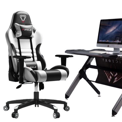 Ergonomic Reclining Gaming Chair, Faux Leather Computer Desk with 170° Adjustable Angle - Universal Furniture Color (White)