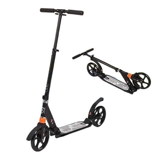 Fast 88 scooter for kids and adults with easy folding system in 3 seconds by Ingotrade, folding and adjustable scooter up to 100 kg with disc brakes and large 200 mm wheels (Black)